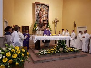 Euharistijsko slavlje predslavio je fra Pero Džida, duhovnik sestara Klarisa. Na početku euharistijskog slavlja fra Pero je istaknuo važnost svete mise i kako je Isus došao samo radi nas i našega spasenja. U nadahnutoj homiliji temeljenoj na riječima blaženog Alojzija Stepinca spomenuo je važnost naše župe i njezinog zaštitnika. Naglasio je koliko se predivnih milosti dogodilo u 80 godina naše župe. Kolike su se milosti izlile na tražitelje i molitelje, koliki su krstom preporođeni, u ispovijedi očišćeni, u bračni savez sklopljeni, kruhom nahranjeni i Duhom Svetim opečaćeni. Napomenuo je da se s tim žarom i dalje nastavi rad u našoj crkvi te da osjećamo prisutnost, slavlje i gozbu u domu Gospodnjem.